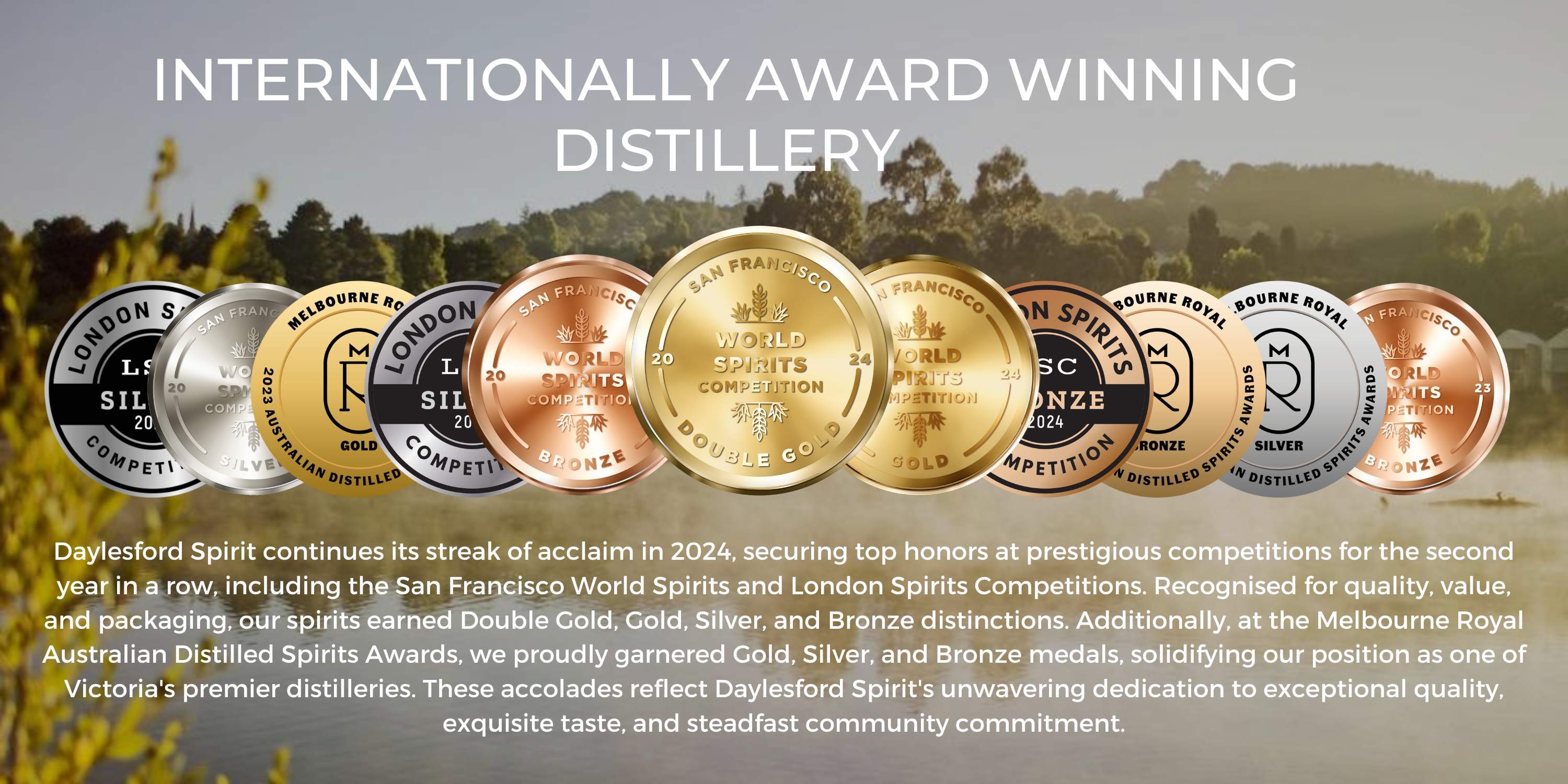 Daylesford Spirit is honoured to have placed DOUBLE GOLD for our Miners Gin with a score of 97/100, GOLD for our Blood Orange Gin with a score of 93/100 and BRONZE for our Barrel Aged Shiraz Gin and Pink Gin in the San Francisco Spirit Competition 2024. This is an incredibly prestigious honour as SFWSC has become one of the most influential spirits competitions in the world. With over 5,000 entries world wide, Daylesford Spirits once again shines above competitors, showcasing our amazing quality and taste.